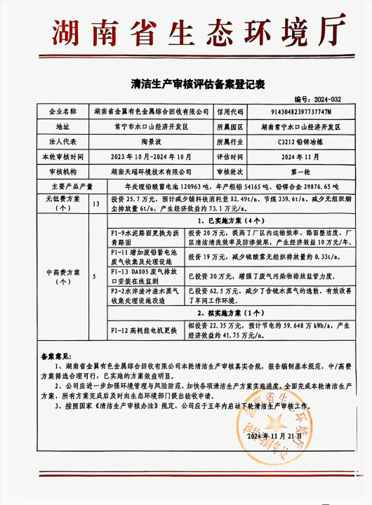 2022年,湖南金翼為響應(yīng)國家發(fā)展綠色經(jīng)濟(jì)理念的號(hào)召和大力發(fā)展再生資源產(chǎn)業(yè)、鼓勵(lì)資源綜合利用行業(yè)發(fā)展的指導(dǎo)思想,計(jì)劃充分利用本地資源和產(chǎn)業(yè)基礎(chǔ)優(yōu)勢,擬在水口山經(jīng)濟(jì)開發(fā)區(qū)產(chǎn)業(yè)園進(jìn)行改擴(kuò)建升級(jí),提升企業(yè)原有廢鉛酸蓄電池回收利用能力到30萬噸,進(jìn)一步推進(jìn)廢鉛酸蓄電池回收再利用行業(yè)的發(fā)展和環(huán)保事業(yè)的可持續(xù)發(fā)展,將該擴(kuò)建二期項(xiàng)目建設(shè)成行業(yè)一流的環(huán)保綠色低碳化的標(biāo)桿工廠。